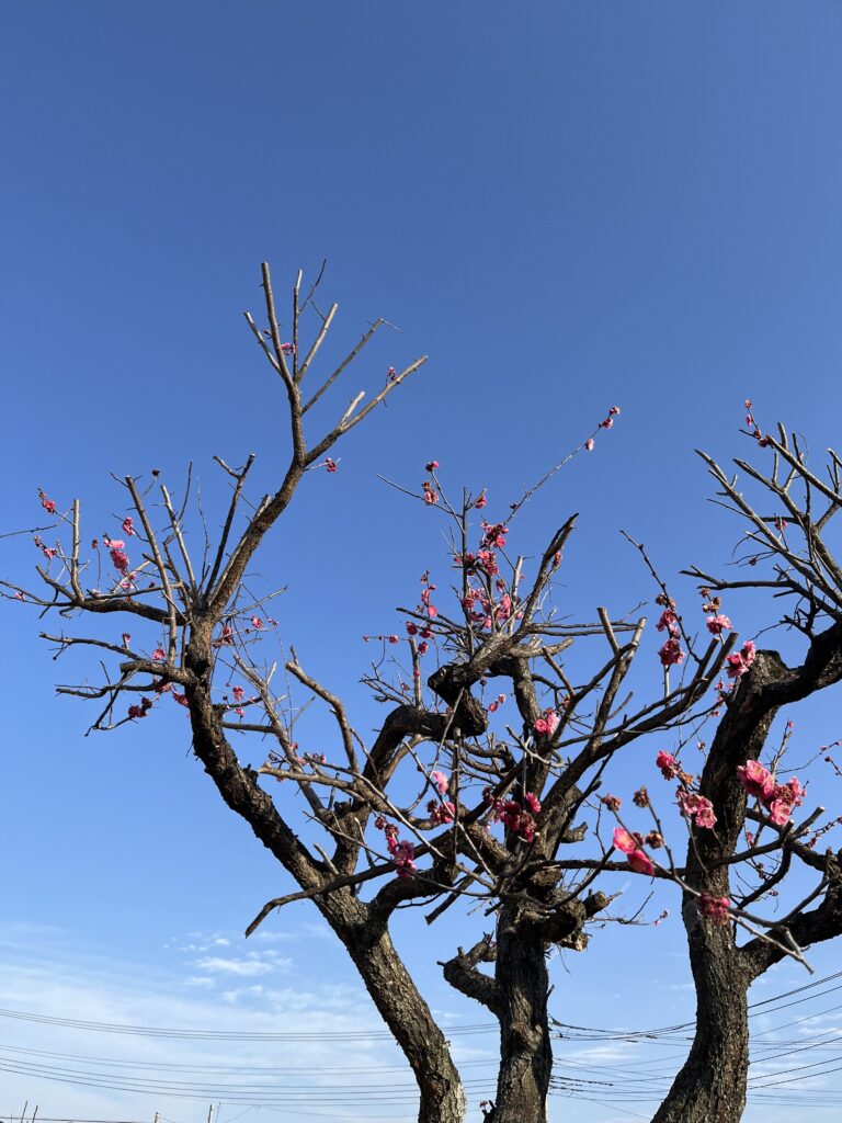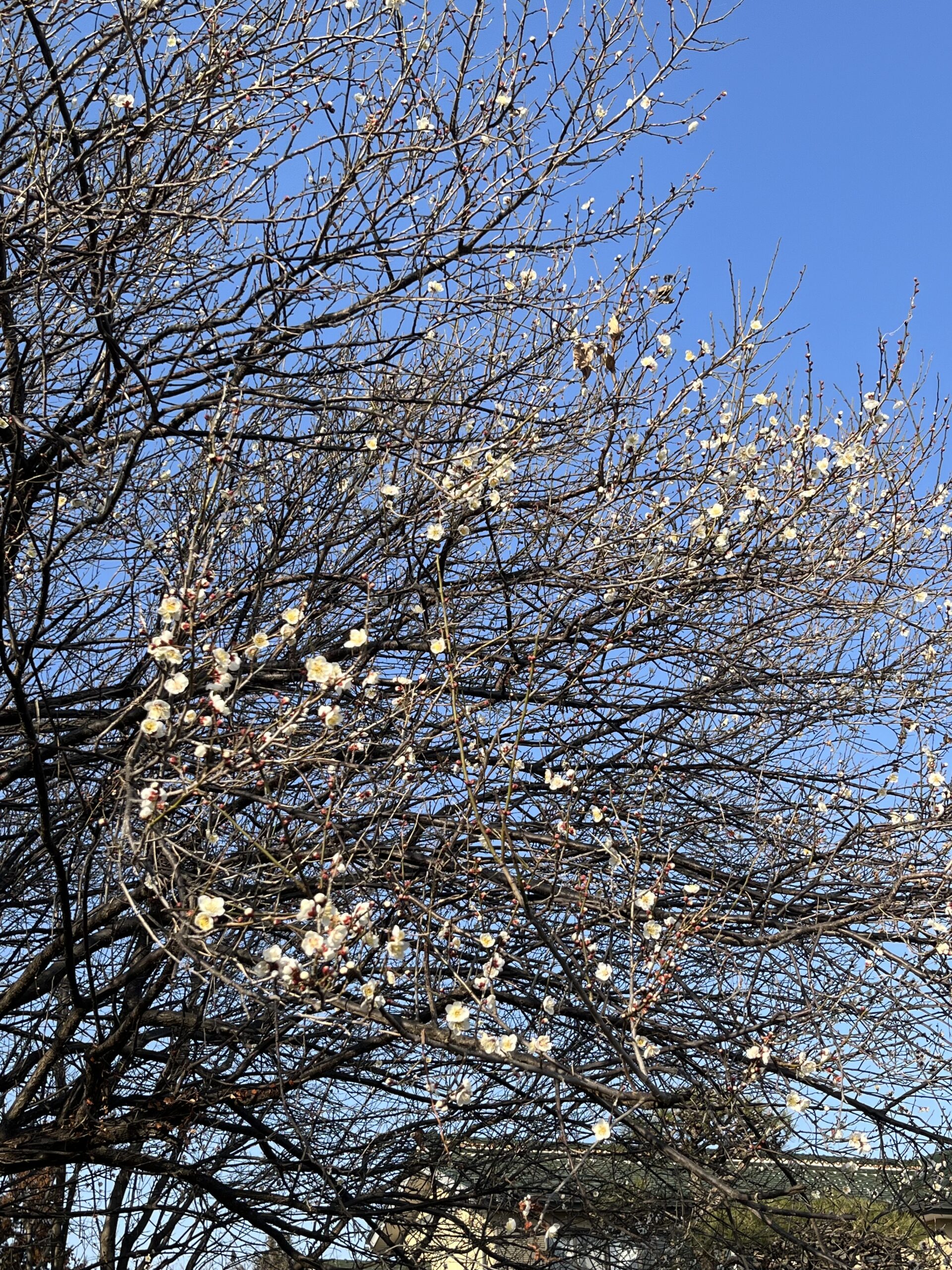 紅色、白色。庭の梅の木が可憐な花をつけました。今年も春はきっと、もうすぐそこまで来ています。